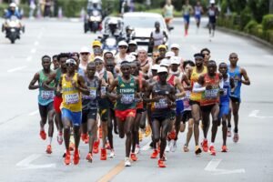 En la carrera femenina del día anterior se había dado una situación similar, con el mano a mano en el estadio entre la keniata Peres Jepchirchir y la etíope Tigst Assefa, pero aquella pudo obtener una pequeña luz de ventaja –dos segundos- en el “rush decisivo” de la última recta.