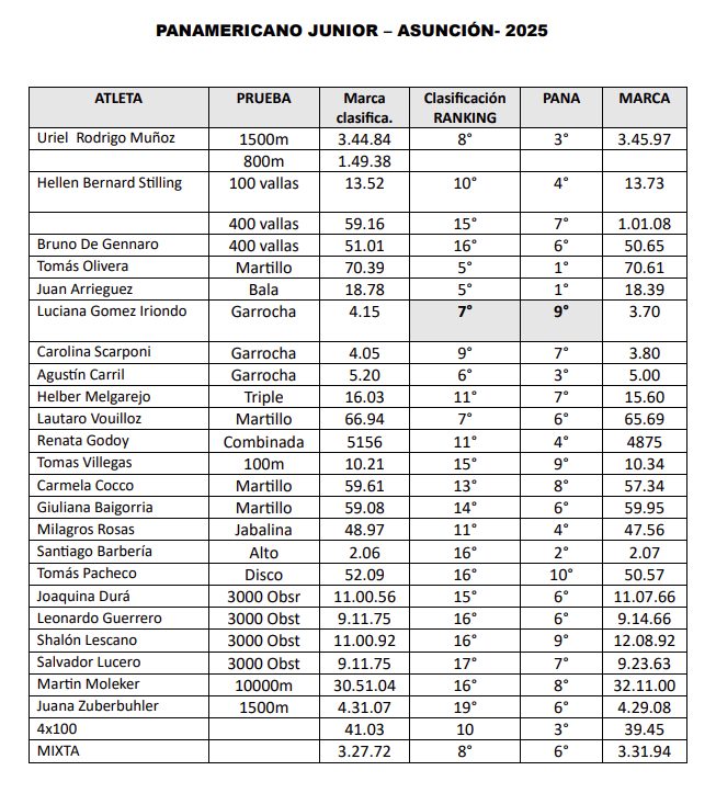 El atletismo argentino tuvo un saldo muy positivo en el Campeonato Panamericano Juniors ASU25, recientemente finalizado.